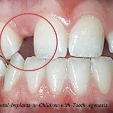 ایمپلنت دندان یکی درمان های پیشنهادی برای کودکان آژنزیس دندان یا به اصطلاح کودکانی که به صورت مادرزادی فاقد دندان هستند، می باشد. به دلیل اینکه رشد اسکلتی در کودکان پس از ایمپلنت نیز ادامه دارد و نیز به دلیل خطرات احتمالی جراحی در سنین پایین، نتایجی که از درمان های ایمپلنت در کودکان بدست می آید، به اندازه نتایج بدست آمده در بزرگسالان قابل پیش بینی نیست.
