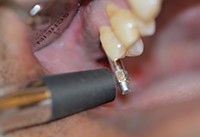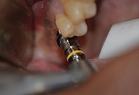 هنگام استفاده از ایمپلنت 6.0 میلیمتری، توصیه می شود تصاعدی عمل کنید تا مته «ترک ناگهانی» را کند کنید و همچنین احتمال داغ شدن استخوان توسط این جهش بزرگ در قطر را کاهش دهید. هنگامی که استئوتومی در محل شماره ی 3 تکمیل شد (شکل 7)، مراحل برای سایت شماره ی 2 تکرار شدند. تنها تفاوت، استفاده از یک لاستیک1.0 میلیمتری O-ring همراه با یک نقطه عمقی 6.0 میلی متری برای نشان دادن عمق مناسب حفاری بر اساس اندازه گیری های CBCT بود (شکل 8).