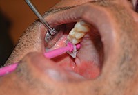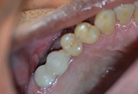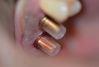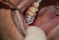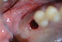 هر دو محل با محلول نمک استریل شستشو داده شدند و بیمار یک مانور والساوا انجام می دهد برای تعیین اینکه آیا ارتباط دهان و دندان هنگام آماده سازی استخوان برها رخ داده است. هیچ سوراخی مشخص نشد، بنابراین مراحل قرار دادن ایمپلنت ها اجرا شد.