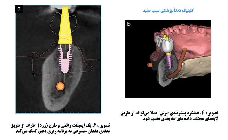 چندین فناوری وجود دارد که میتواند برنامه ریزی و اتمام درمان ایمپلنت دندان را بهبود بخشد. همانطور که قبلا گفتیم، CBCT برای تصویربرداری موقعیت مناسب ایمپلنت فکها ضروری است. CBCT یک ارزیابی واقعی سه بعدی از وضعیت آناتومیک فعلی بیمار به دندانپزشک ارائه میدهد. نرم افزار اسکن مقدار، کیفیت و حجم استخوان موجود برای قرار دادن ایمپلنت و همچنین ساختارهای آناتومیک حیاتی، مانند کانال فک یا سینوس ماگزیلاری را نشان میدهد. همچنین برای ارزیابی برآمدگیهای ناقص که نیاز به مراحل تقویت استخوان دارند مفید خواهد بود. متخصص ایمپلنت میتواند روش مطلوب توسعه فضا مانند گسترش برآمدگی، بازسازی هدایت شدهی استخوان یا انسداد پیوند را انتخاب کند.